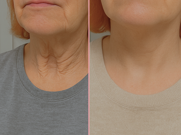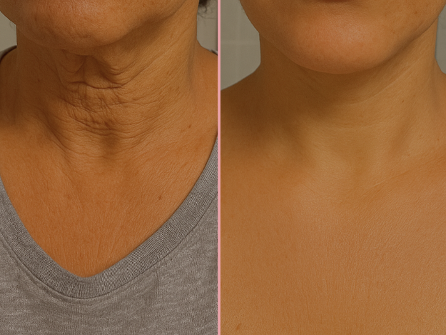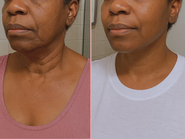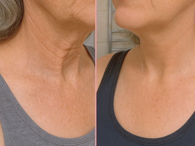 Miałam początki wiotczenia skóry na szyi — teraz jest to o wiele mniej widoczne.